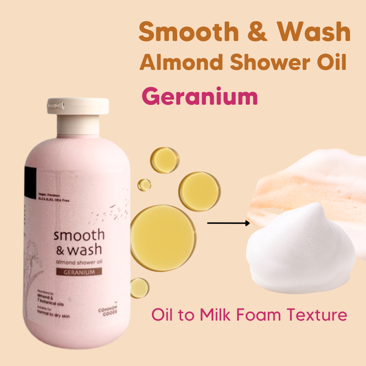 Almond Shower Oil, Smooth & Wash, Geranium, Common Goods Malaysia, 250ml