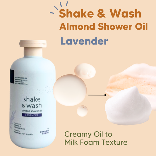 Almond Shower Oil, Shake & Wash, Lavender, Common Goods Malaysia, 250ml