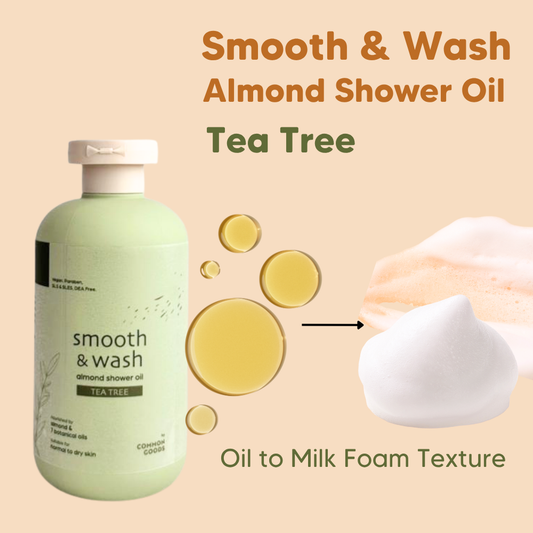 Almond Shower Oil, Smooth & Wash, Tea Tree, Common Goods Malaysia, 250ml