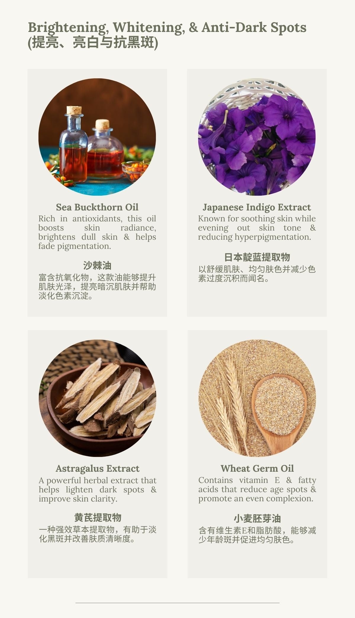 Formulated with sea buckthorn oil, olive leaf extract, and sweet almond oil, this luxurious face oil deeply hydrates and nourishes the skin. Infused with Japanese indigo extract and spilanthes acmella extract, it works to reduce pigmentation and restore skin clarity. Lightweight and fast-absorbing, it leaves your skin radiant, smooth, and balanced.