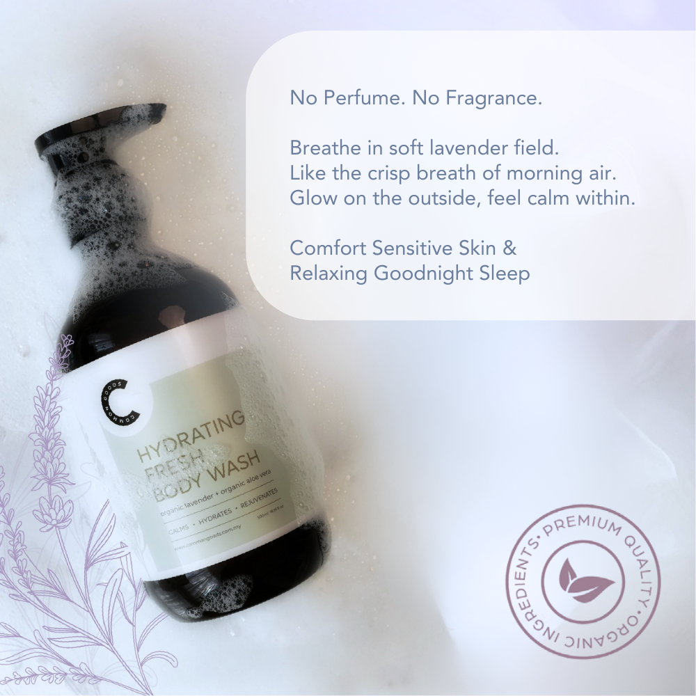 - Hydrating Fresh Body Wash Lavender — gentle, soothing, non-stripping for sensitive skin