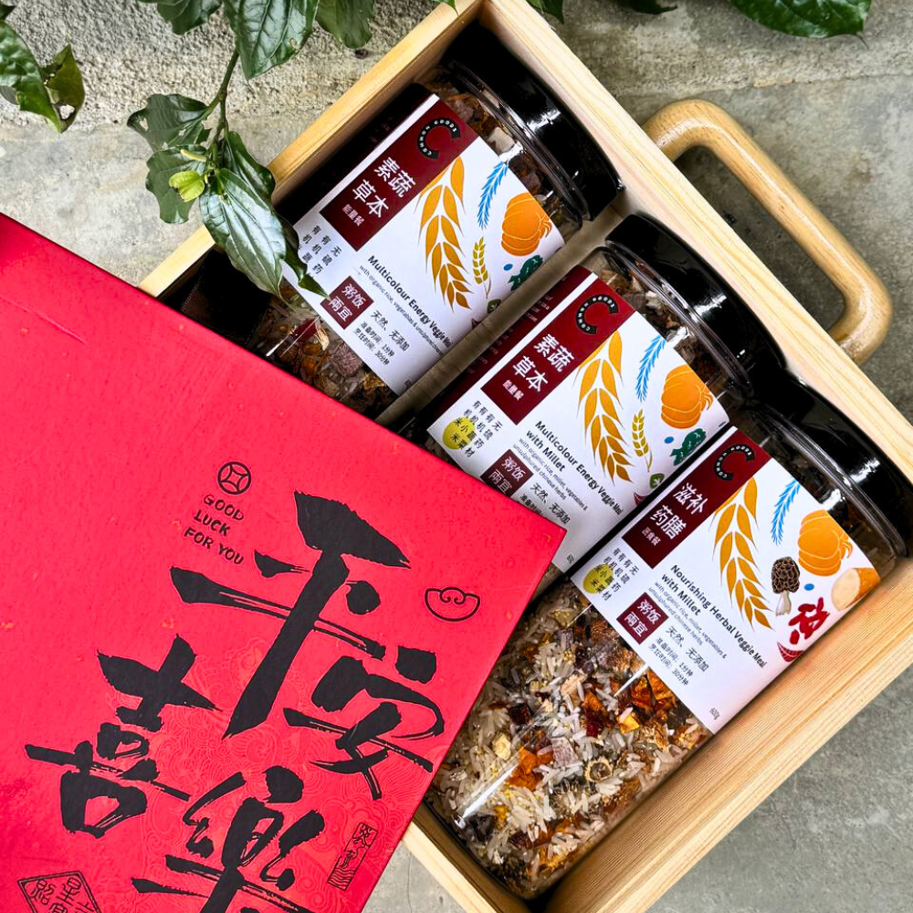Celebrate health and joy with this warm & nourishing rice gift. Crafted with premium organic local rice, vegetables, functional mushrooms & sulfur-free chinese herbs, our rice meal series offer more than just flavour.