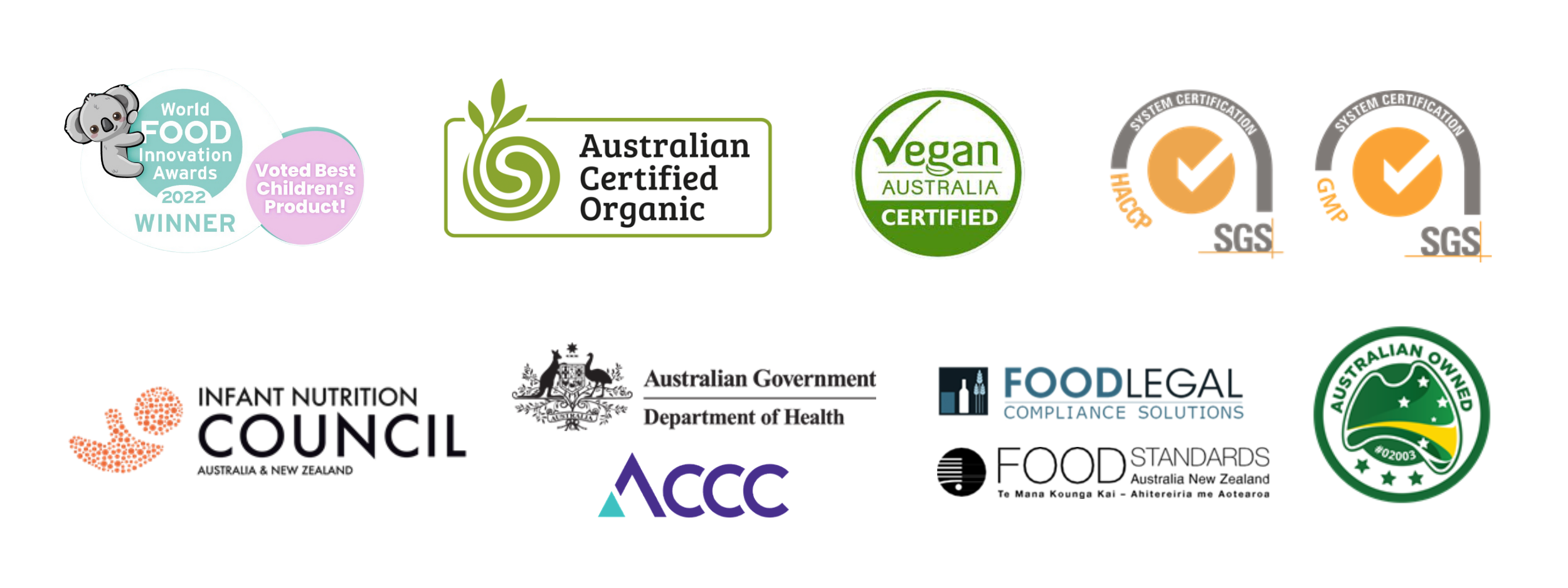Made from high-quality organic ingredients, sourced in Australia, ensuring they are free from harmful chemicals, additives and preservatives. You can trust you’re giving your child a clean and pure source of nourishment.