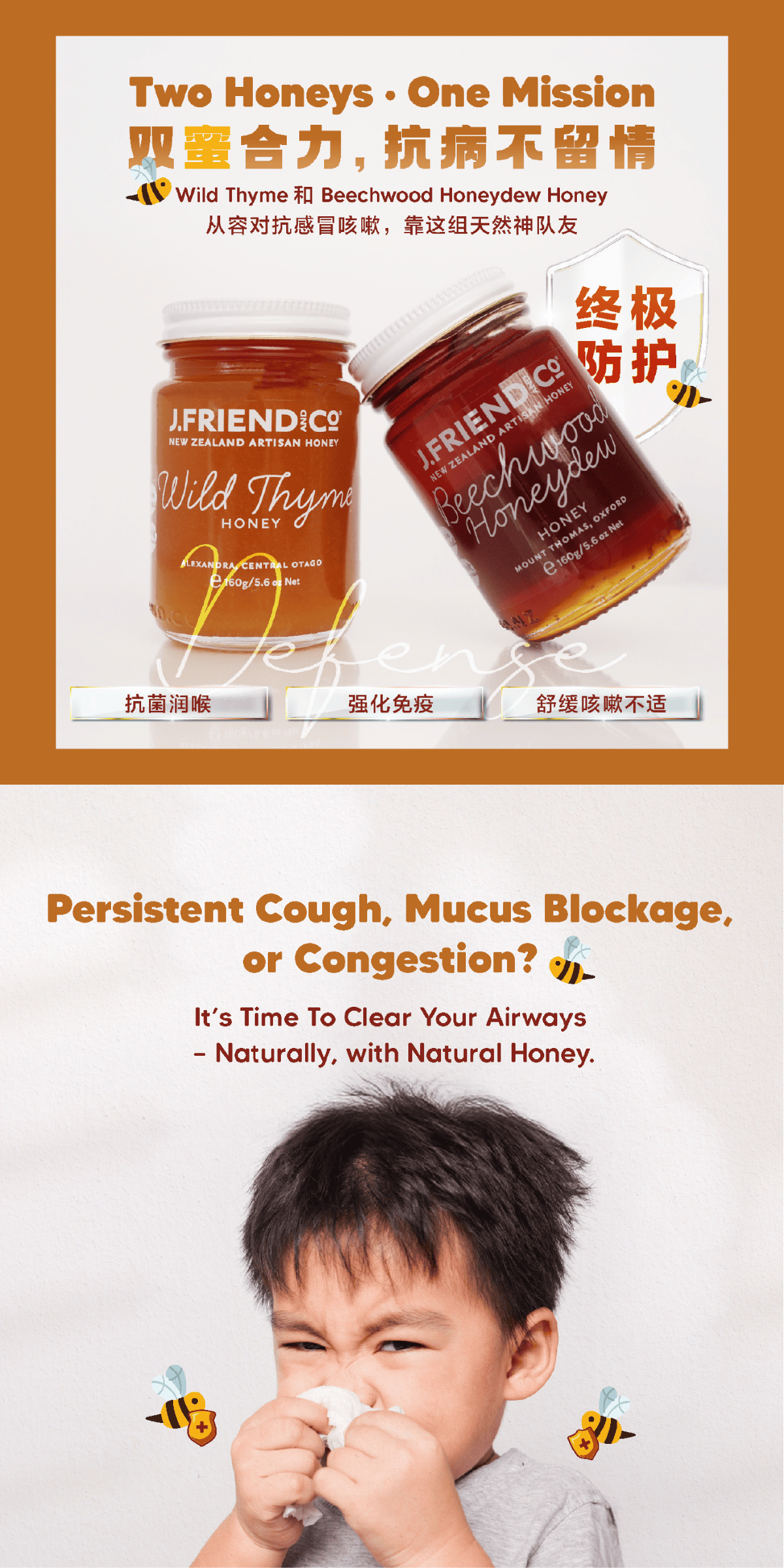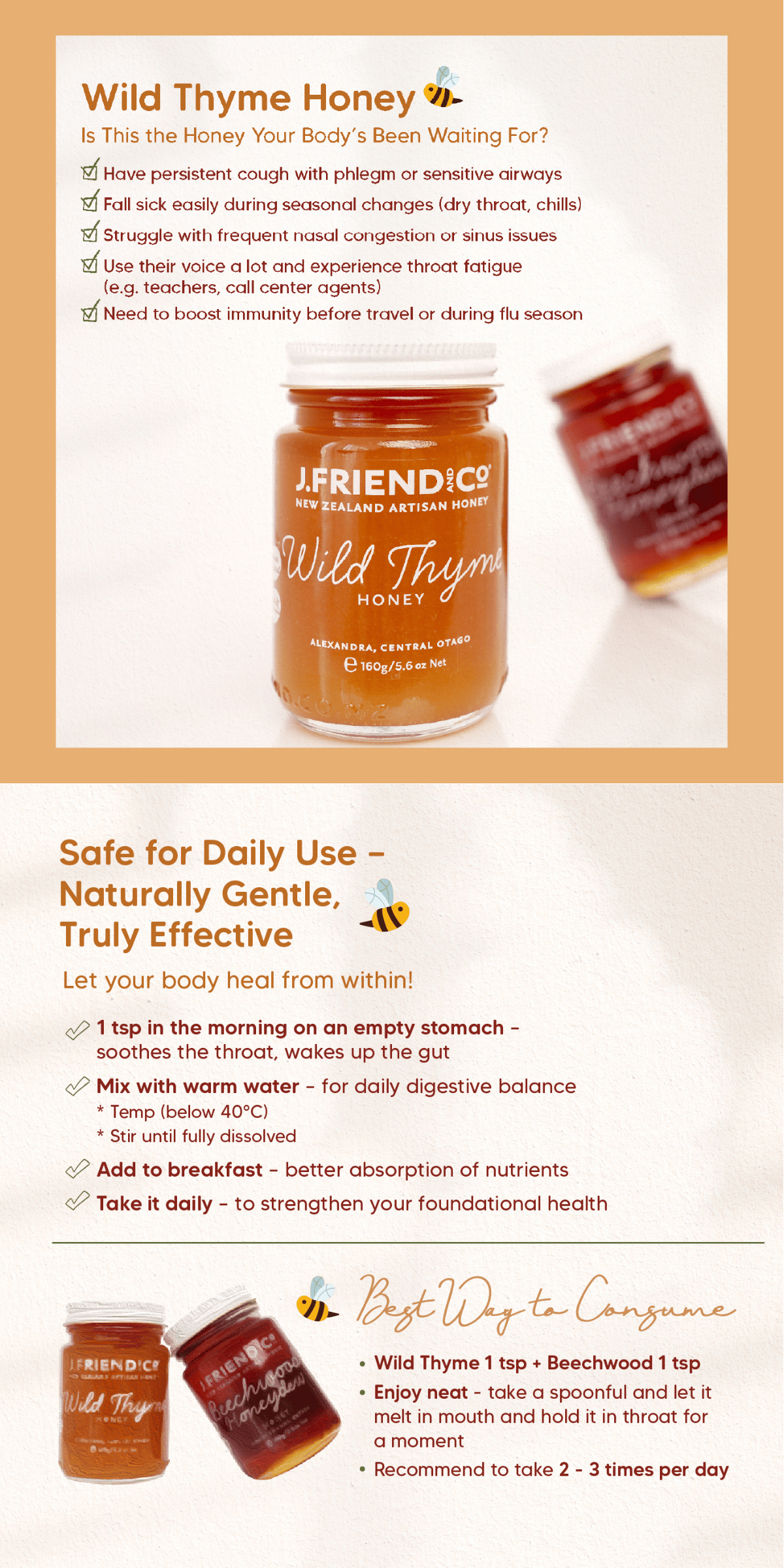 Wild Thyme Honey, 160g, 1.4kg, J.Friend & Co, Raw, Pure, Artisan, New Zealand